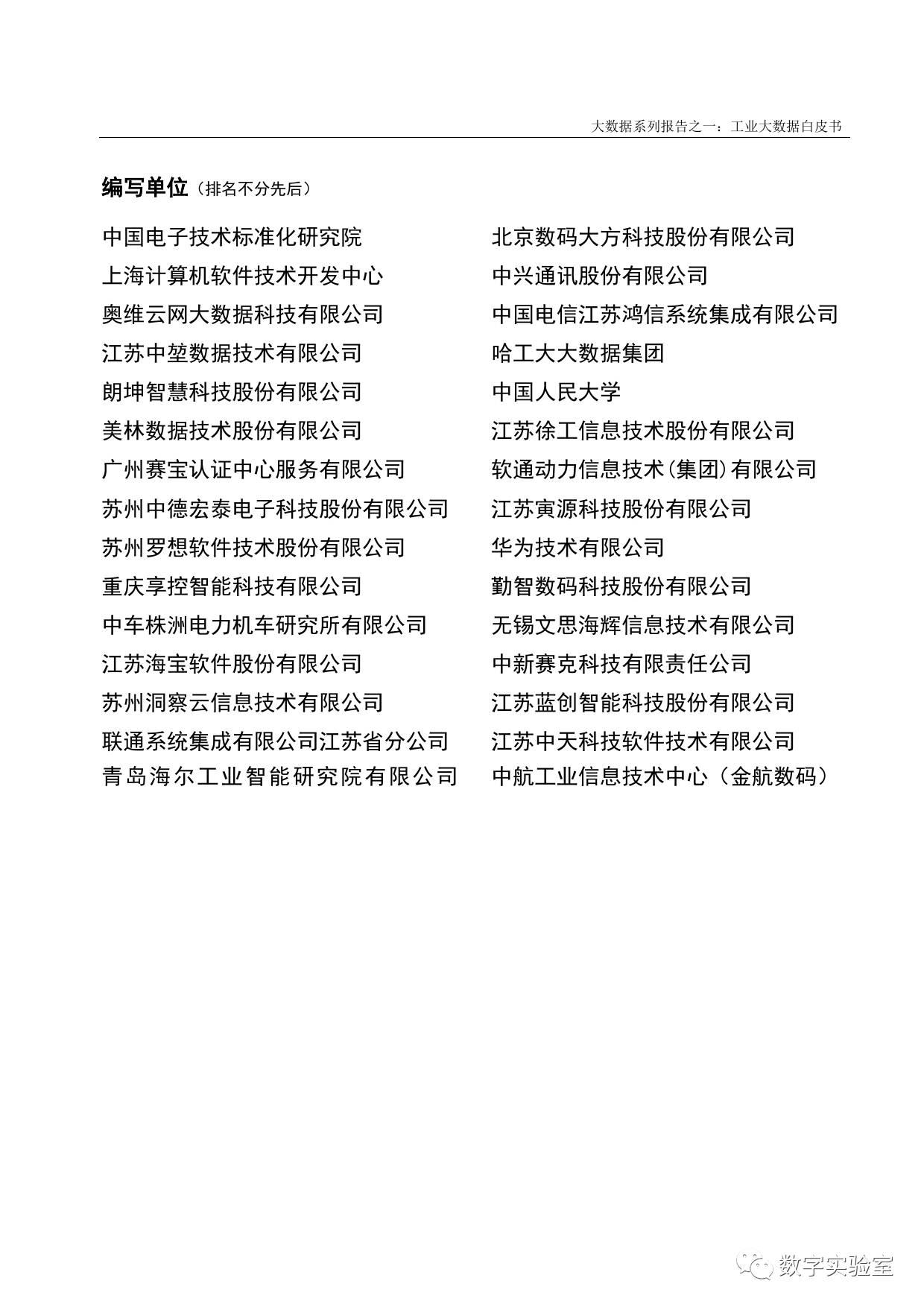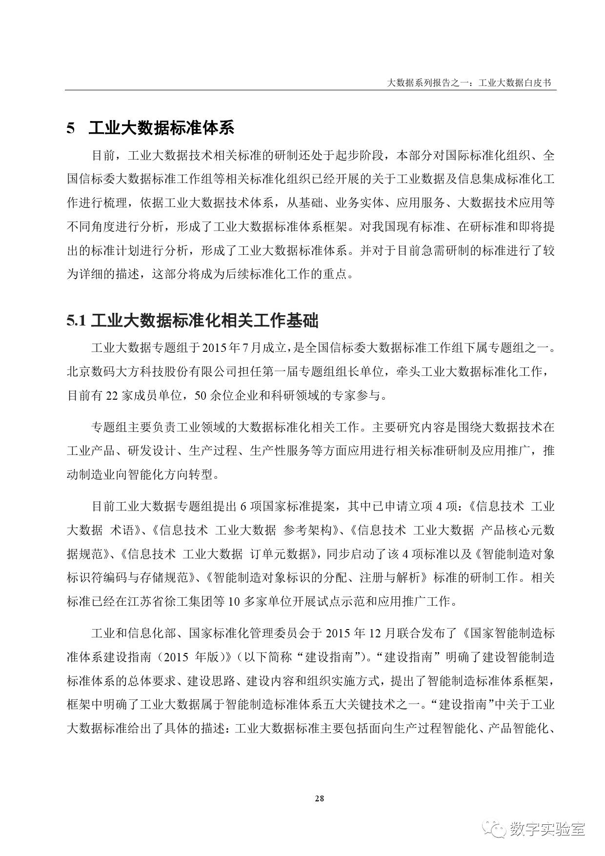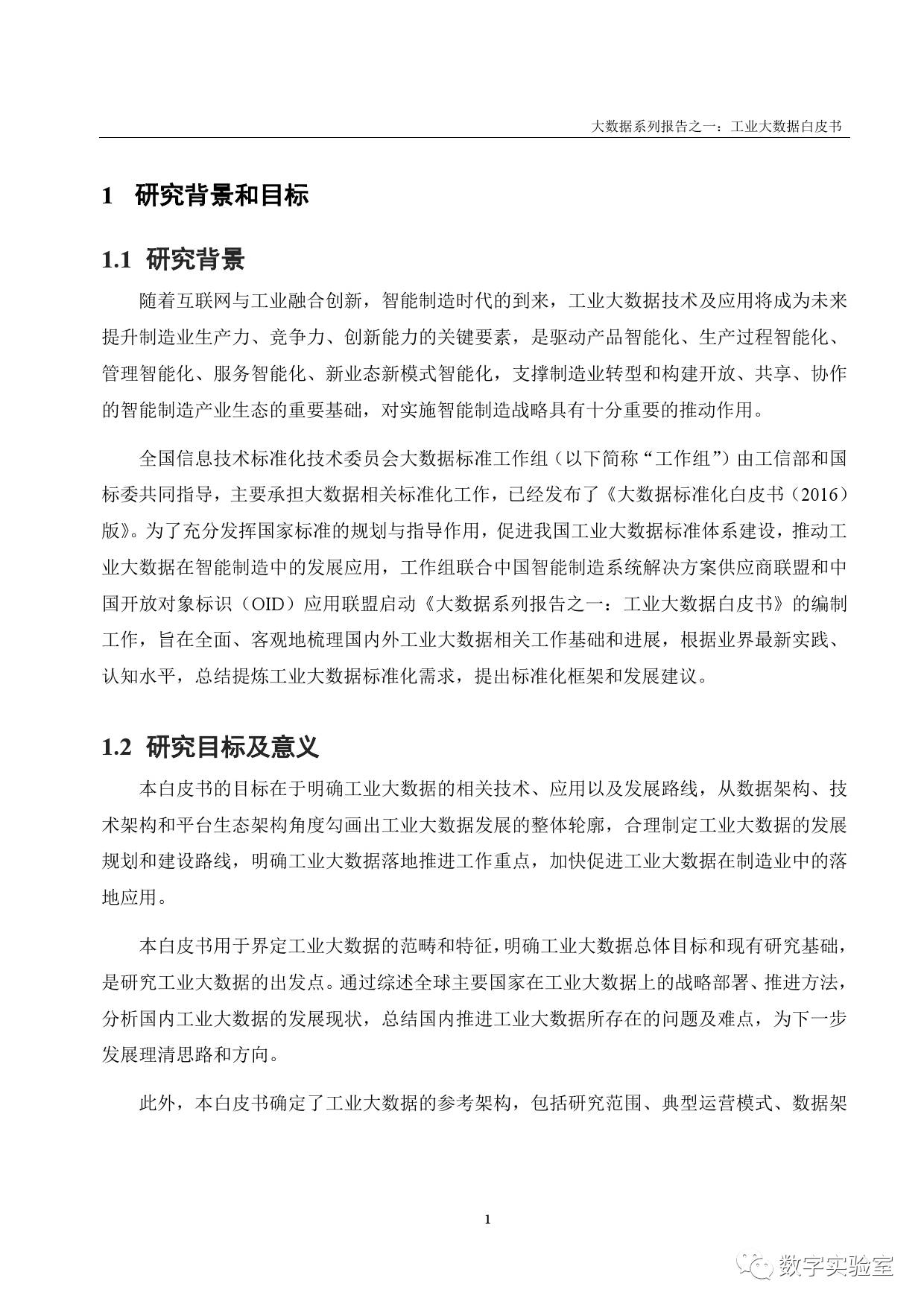 《工业大数据白皮书》由中国电子技术标准化研究院联合全国信标委大数据标准工作组、中国智能制造系统解决方案供应商联盟、中国开放对象标识(OID)应用联盟,以及30家企事业单位共同编制。其目标在于明确工业大数据的相关技术、应用以及发展路线,从数据架构、技术架构和平台架构角度勾画出工业大数据发展的整体轮廓,合理制定工业大数据的发展规划和建设路线,明确工业大数据落地推进工作重点,加快促进工业大数据在制造业中的落地应用。