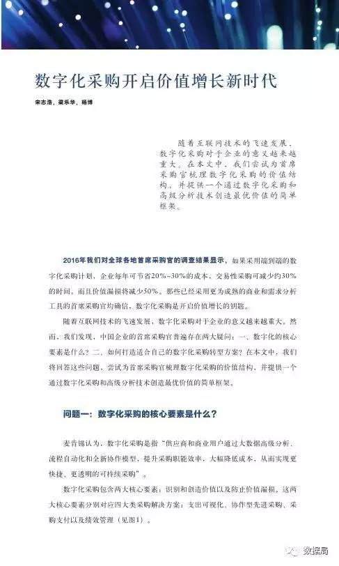 随着互联网技术的飞速发展,数字化采购对于企业的意义越来越重大。然而,我们发现,中国企业的首席采购官普遍存在两大疑问:一、数字化的核心要素是什么?二、如何打造适合自己的数字化采购转型方案?在本文中,我们将回答这些问题,尝试为首席采购官梳理数字化采购的价值结构,并提供一个通过数字化采购和高级分析技术创造最优价值的简单框架。