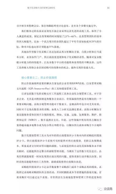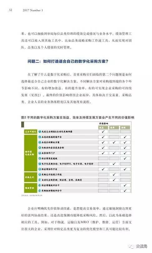2016年我们对全球各地首席采购官的调查结果显示,如果采用端到端的数字化采购计划,企业每年可节省20%~30%的成本,交易性采购可减少约30%的时间,而且价值漏损将减少50%。那些已经采用更为成熟的商业和需求分析工具的首席采购官均确信,数字化采购是开启价值增长的钥匙。