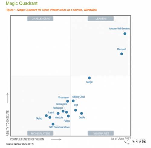 国际知名调研机构Gartner公布2017年全球云计算IaaS魔力象限,阿里云强势崛起成为这一核心领域的前四名。这也是中国云计算厂商首次进入Gartner的IaaS魔力象限。排在阿里云之前的是,AWS、微软和Google。