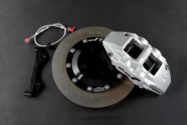ALCON产品的优势为:一、刹车卡钳利用铝合金作为铸造整体活塞卡钳结构,能用来增强刚性及减低重量;产品线上预设有四活塞或六活塞设计以减轻制动脚踏硬度;大小有别的活塞腔直径(能确保平均接触刹车皮渐进式刹车)。二、刹车碟在高强度和轻量化设计下,能抗衡高温耐热和稳定工作,符上有航空标准的合金转接桥;在碟片磨擦面上有ALCON独特标记的半月型凹槽提供抓著力配合上有孔刹车碟可提升耐用性;具方向性的弯型冷却叶能提高冷却效果;ALCON悬浮刹车碟系统允许热能扩散,有效减低颤抖变化的趋势。三、刹车皮拥有极佳的工作性能及温度范围,在极高温下仍有卓越的制动表现。