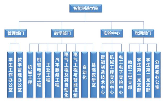 智能制造学院是学校在对接“中国制造2025”战略和长三角全球重要的先进制造业中心建设,依托泰州“制造强市”计划,围绕智能制造装备产业形态布局,将原机械工程学院、原电子电气工程学院的大部分专业进行整合,并于2016年5月新设立的二级学院,下设7个专业,约2100余名在校学生。学院致力于助推产业企业装备自动化、数字化、智能化升级,建成“三位一体”的创新基地,即:现代智能制造产业的“现场工程师”培养中心、企业智能制造技术服务中心、智能制造产业转型升级的人才培训中心。