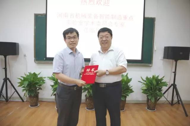 副校长王新杰教授宣读宣布了《关于聘请李培根院士等15名专家为河南省机械装备智能制造重点实验室第一届学术委员会委员的决定》文件,宣读了第一届学术委员会委员名单:主任委员李培根院士、副主任委员中信重工机械股份有限公司王继生教授级高工、郑州轻工业学院罗国富教授,委员有清华大学阎绍泽教授、浙江大学顾新建教授、华中科技大学陈学东教授、北京理工大学阎艳教授、山东大学李剑峰教授、武汉理工大学李文峰教授、西北工业大学王军强教授、北京航空航天大学陶飞教授、河南工业大学惠延波教授,郑州轻工业学院王新杰教授、陈鹿民教授、李浩副教授。校长赵卫东教授给参会的第一届委员颁发了聘书,第一届学术委员会主任根叔讲话。随后,与会人员合影留念。