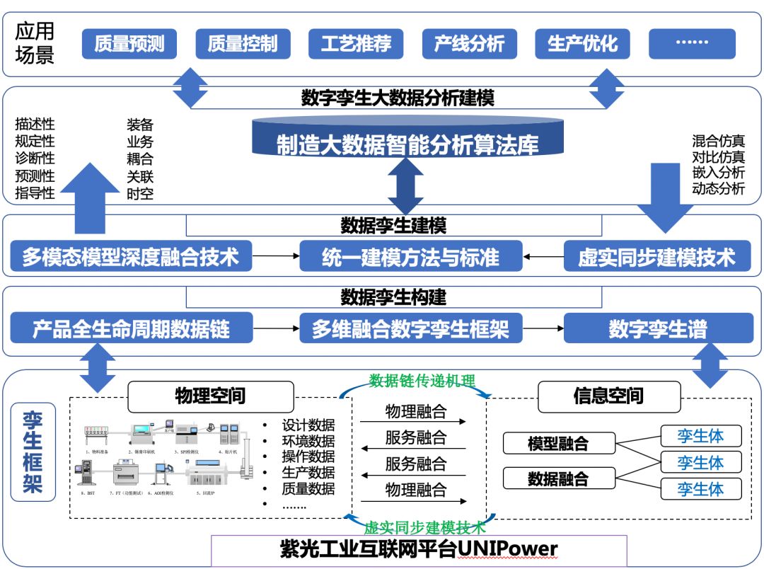 面向电子制造SMT产线智能化生产的需求,本项目通过数字孪生技术和工业大数据技术等实现制造模式转变关键技术的应用展开研究:依托工业互联平台探索数字孪生制造模式,采集并关联研发生产工艺与设备运行工况数据,推动多学科、多维度、多物理量的平台化集成,开展数字孪生可视化建模,开发部署可调用数字孪生的工业APP,实现SMT产线在虚拟空间的数字映射、实时监控和动态优化,进而在数字孪生基础上实现质量大数据分析等服务,促进 SMT产线的智能化改造与转型升级,从而推进电子制造行业制造模式转变、质量管理水平的全面提升,为我国制造业竞争力提升和转型升级贡献力量。