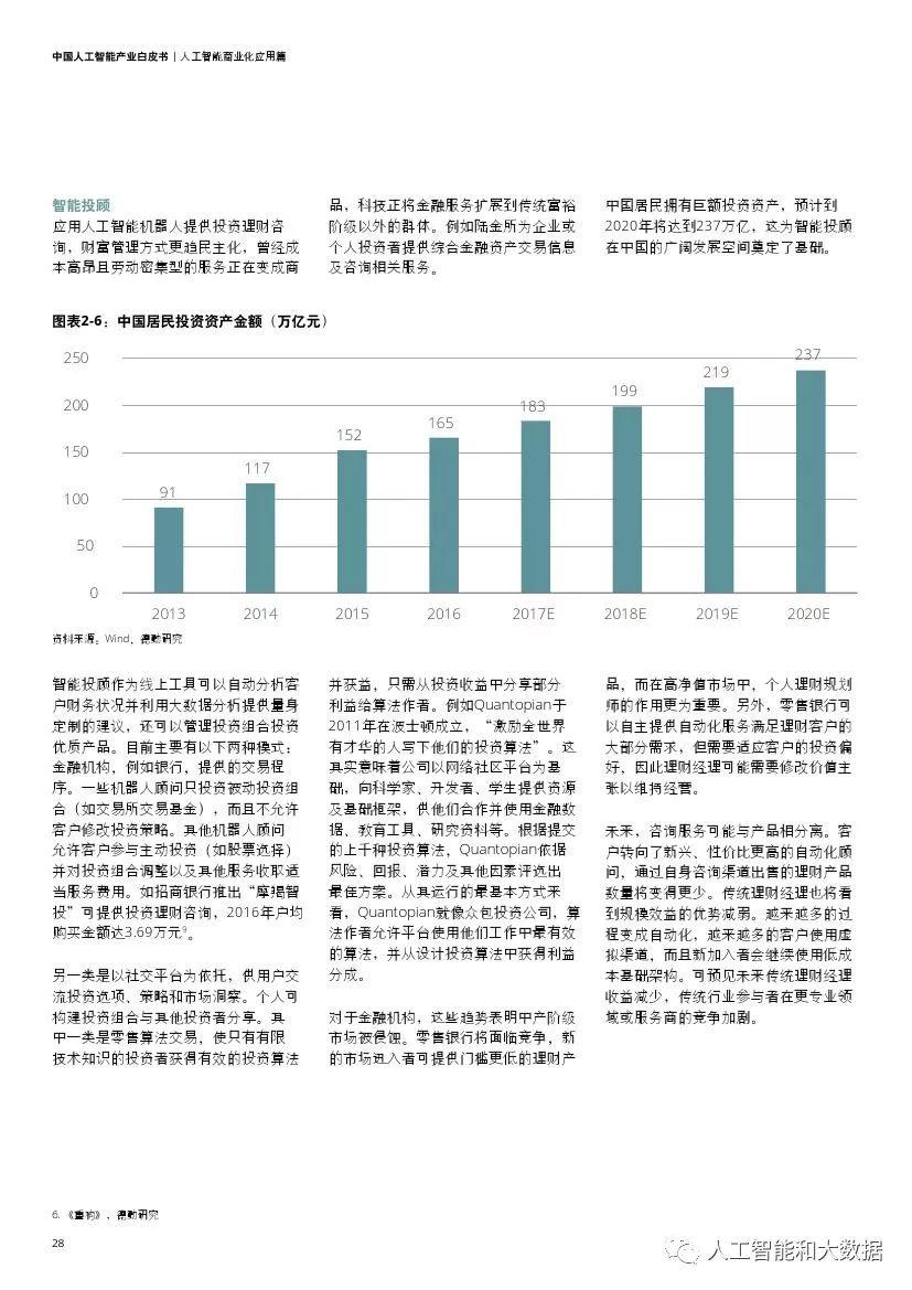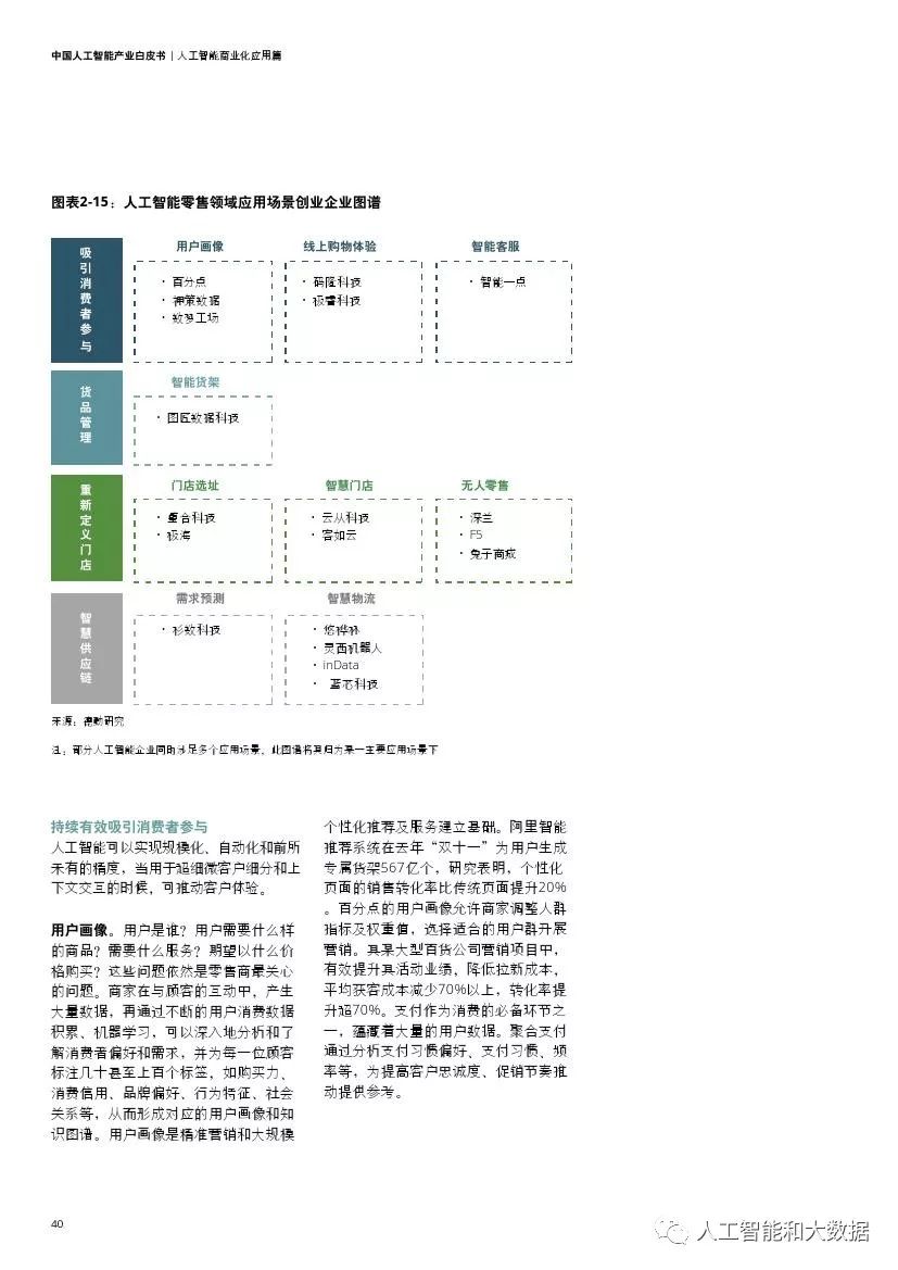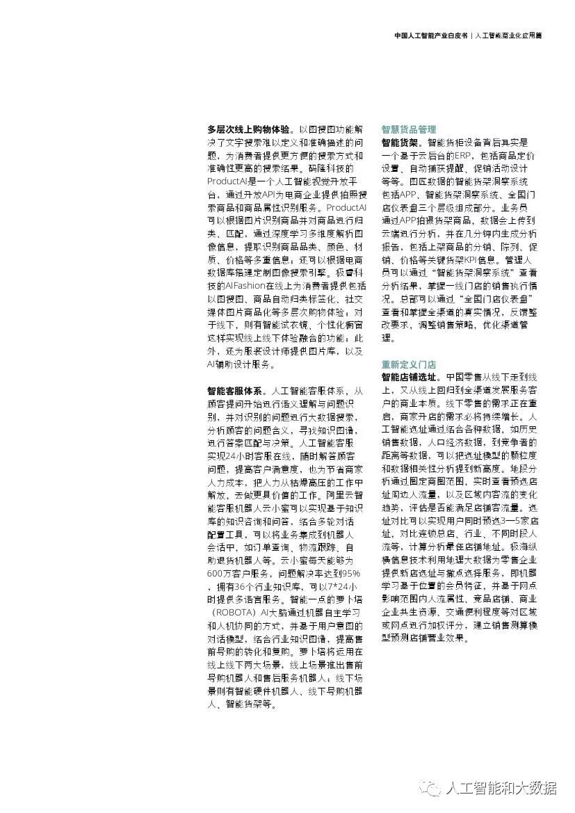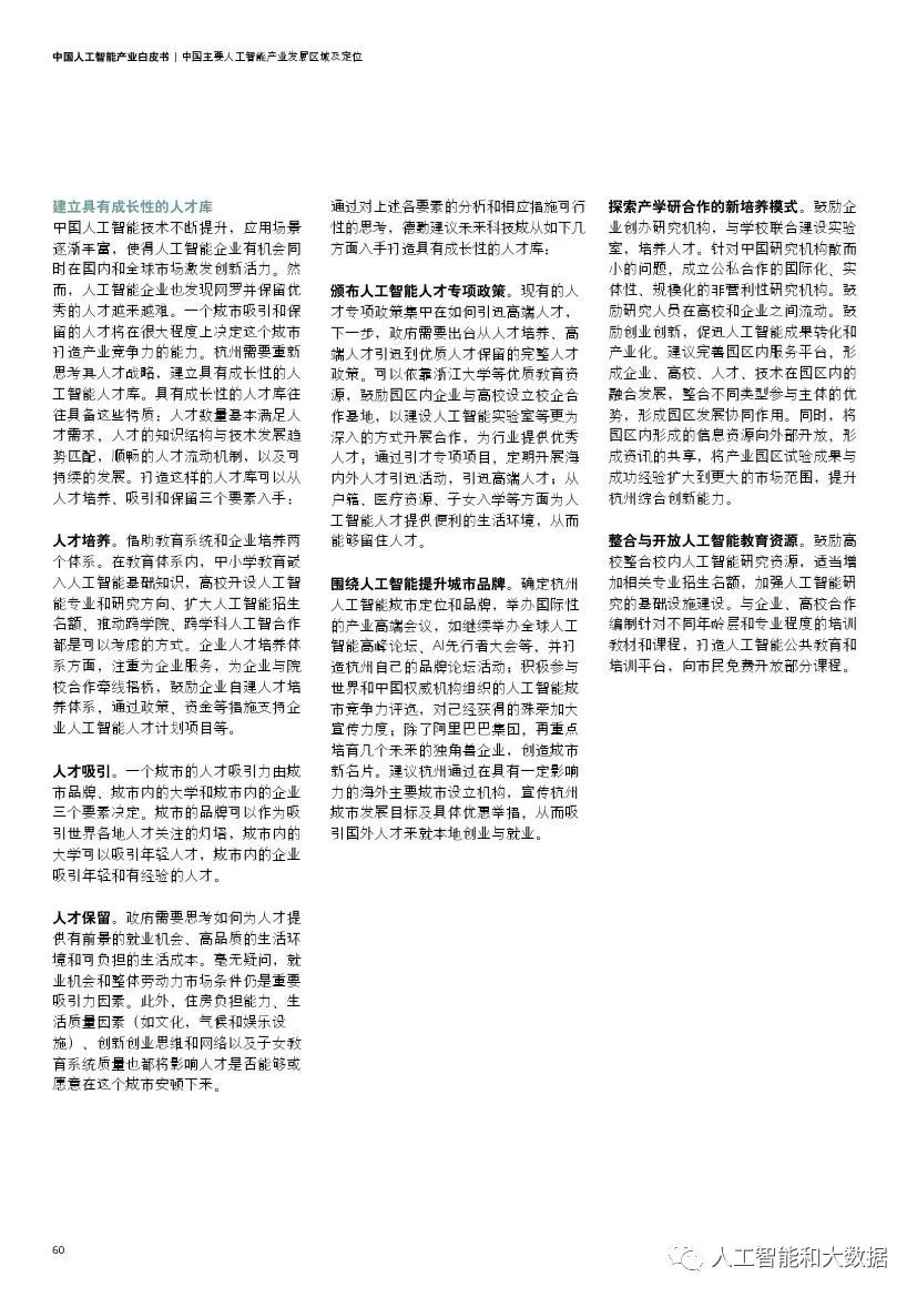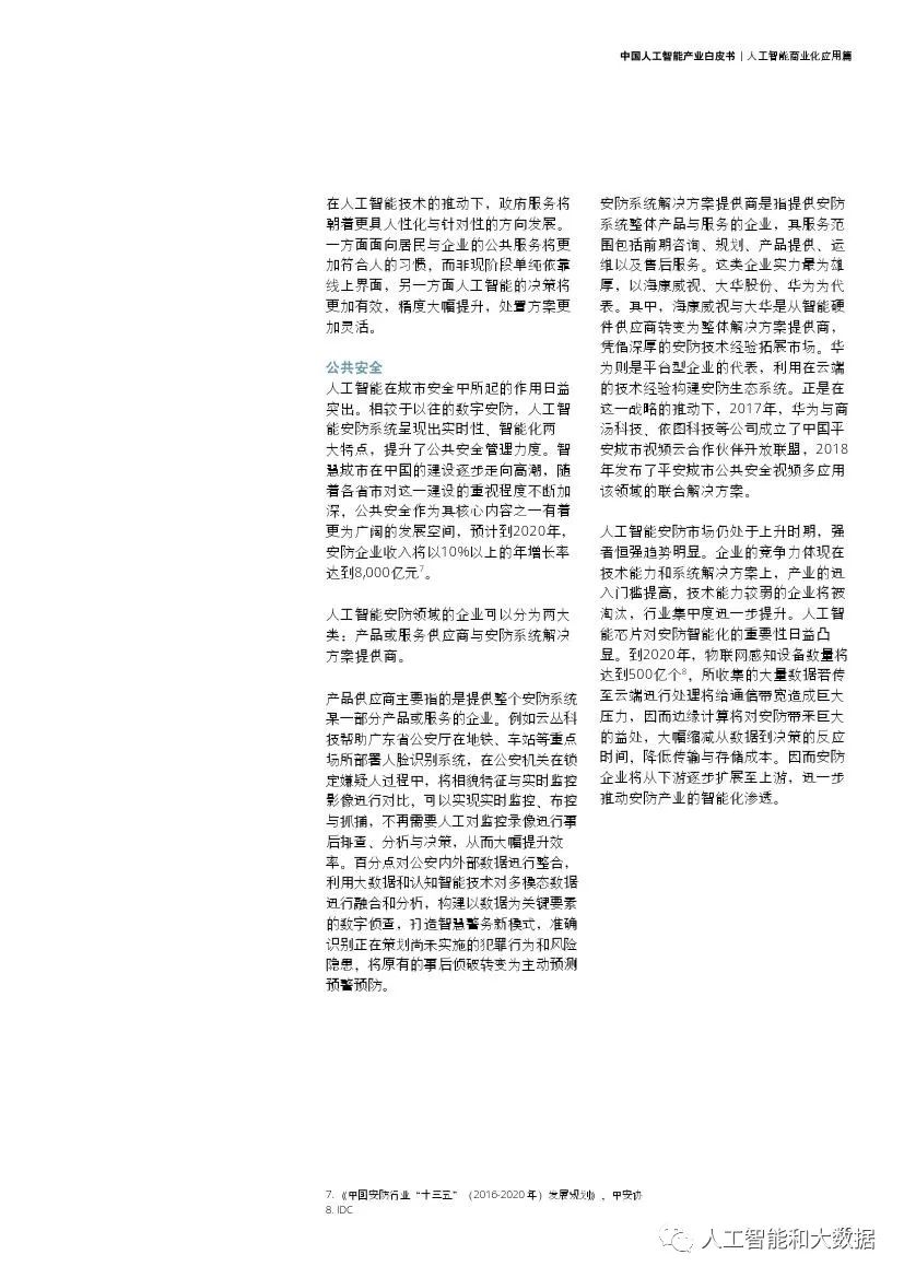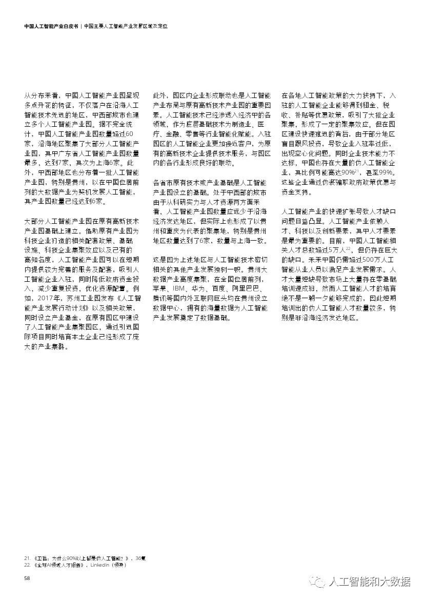 《中国人工智能产业白皮书》从人工智能行业综述、商业化应用、中国主要人工智能产业发展区域及定位三大章节对中国人工智能产业进行了分析。重点内容摘录如下: