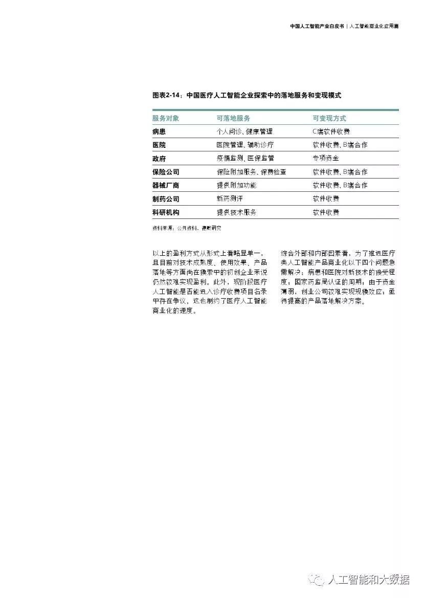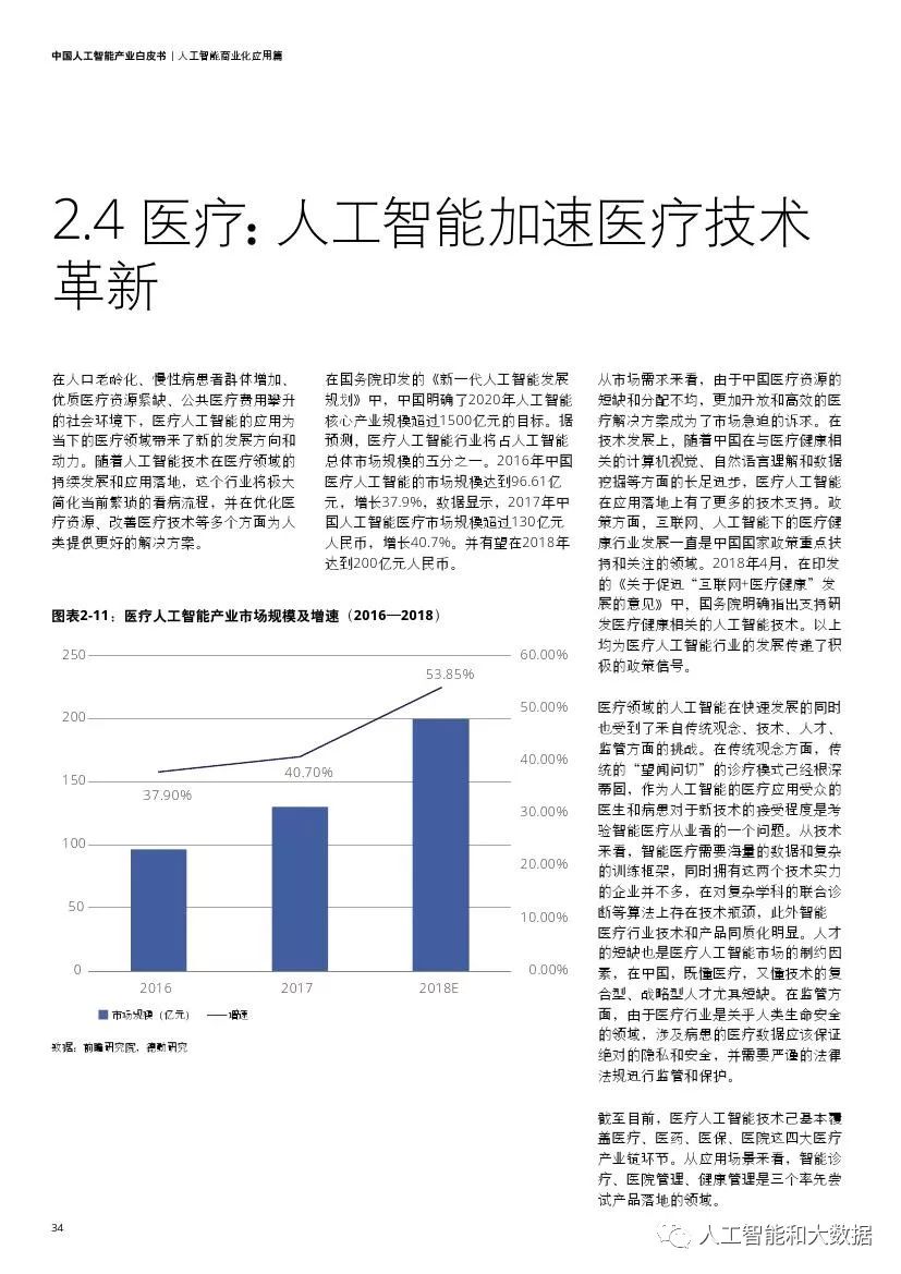 06 医疗行业人工智能应用发展快速,但急需建立标准化的人工智能产品市场准入机制并加强医疗数据库的建设;