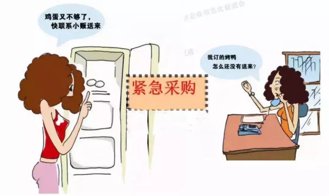 看来要多切些菜、洗点菜、炒多点菜了(APS高级排程根据现场物料和设备使用情况调整生产任务)厨房鸡蛋已经用了7个(MES现场数据采集,现场短信通知仓库),冰箱里查看又不够了,(仓管员查仓库,短信通知采购)打电话叫小贩送来。(紧急采购)