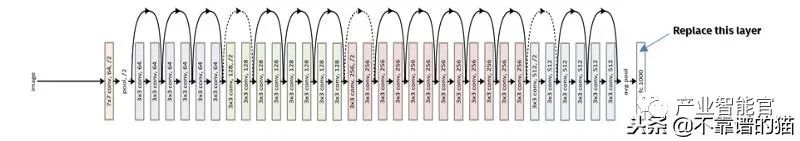 我们用自己的FC层和sigmoid层(二元分类)替换了最终的连接层,如下图所示: