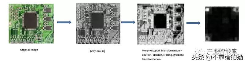 ?首先使用计算机视觉(非机器学习方法)提取“感兴趣区域(ROI)”。在这里,我们经历了图像上的多个过程,例如灰度缩放,诸如腐蚀,膨胀,闭运算图像等的变换,最终曲线的ROI图像基于用例类型/产品类型等。腐蚀的基本思想就像土壤侵蚀一样 - 它会侵蚀前景物体的边界。膨胀恰好与腐蚀相反 - 它增加了前景物体的大小。通常情况下,在去除噪音等情况下,腐蚀之后是膨胀。开运算只是腐蚀后膨胀的另一个名称。它在消除噪音方面很有用。闭运算与开运算相反,膨胀之后是腐蚀。它具有填充物体内细小空洞,连接邻近物体和平滑边界的作用。 梯度变换是图像膨胀与腐蚀的区别。总的来说,这些步骤有助于在原始图像中查看几乎不可见的裂缝/划痕。参见下图: