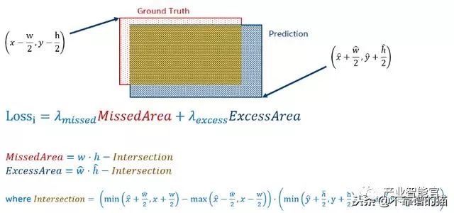 我们想出了一个基于区域的损失,请参考下图来了解我们如何使用基本数学来计算 ground truth和预测标签之间的交叉区域。在损失函数中,我们想要惩罚遗漏(missed area)和超出区域(excess area)。理想情况下,我们希望惩罚遗漏区域而不是超出区域: