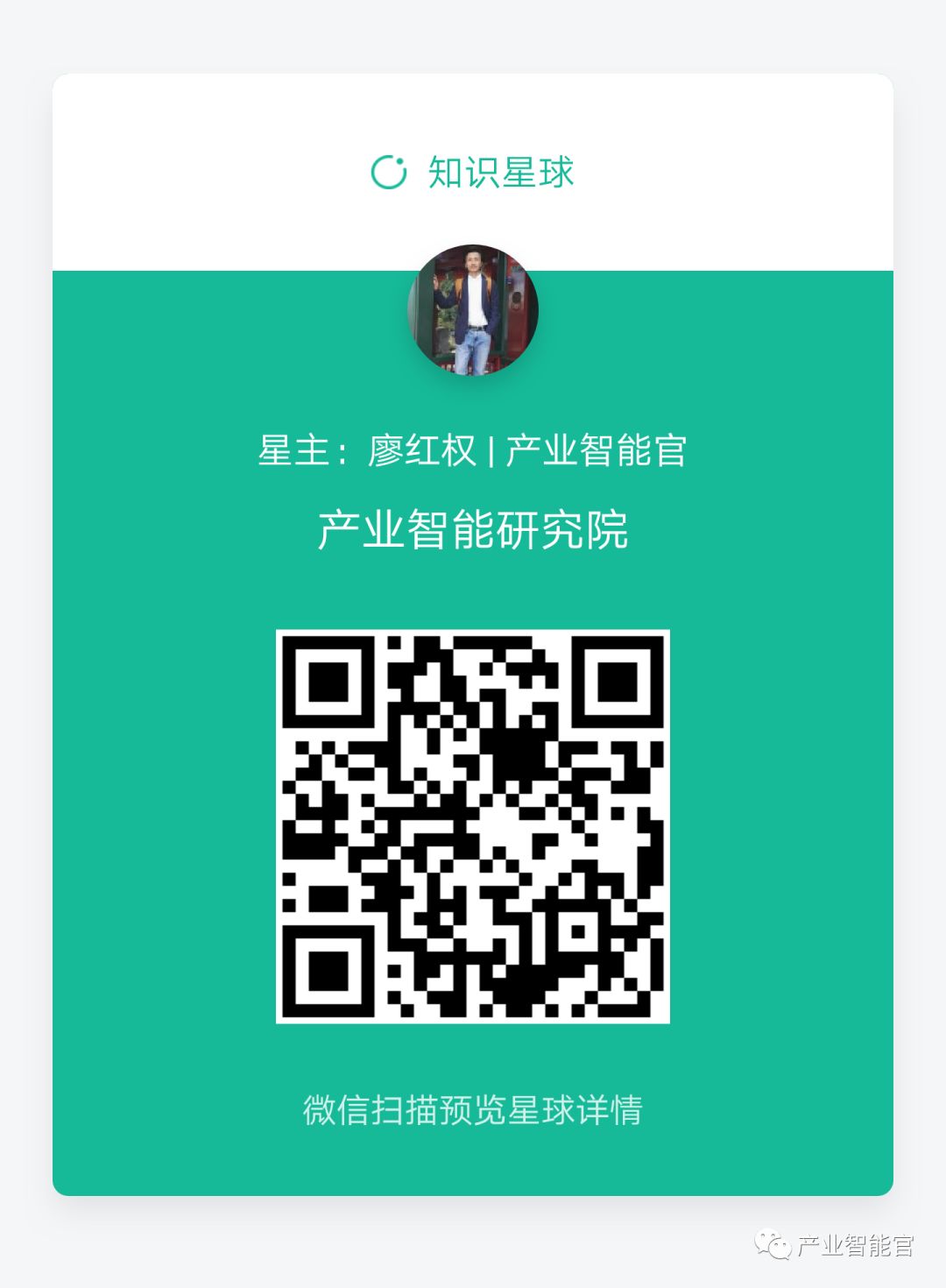 加入知识星球“产业智能研究院”:先进产业OT(工艺+自动化+机器人+新能源+精益)技术和新一代信息IT技术(云计算+大数据+物联网+区块链+人工智能)深度融合,在场景中构建状态感知-实时分析-自主决策-精准执行-学习提升的机器智能认知计算系统;实现产业转型升级、DT驱动业务、价值创新创造的产业互联生态链。