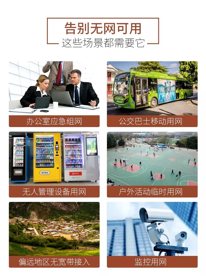 因为其灵活自由的属性,广泛适用于无人管理设备用网、公交巴士移动用网、偏远地区无宽带用网已经户外活动临时组网等。