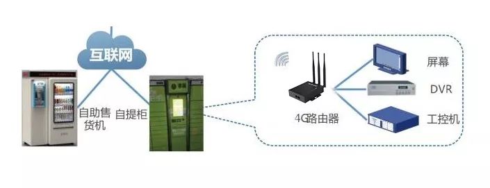 通过4G路由器,为自动售货机提供无线网络传输,实现自动售货机和用户不同后端平台的联网功能。