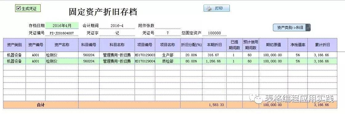 在常规的财务会计核算管理软件中,还有一个专门的管理模块就是固定资产,从新增和每月折旧等管理,同时,这里采用了业务财务一体化的方法,实现了每月折旧凭证的自动生成。