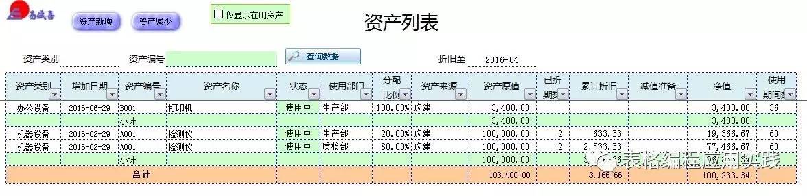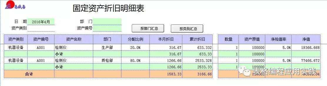 要查询某个月的折旧情况,可以通过如下表进行查询: