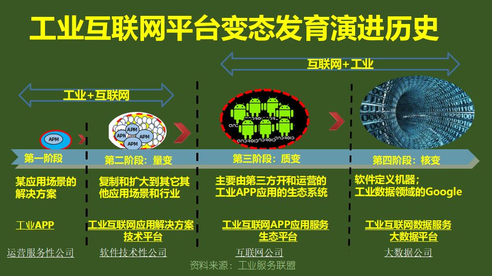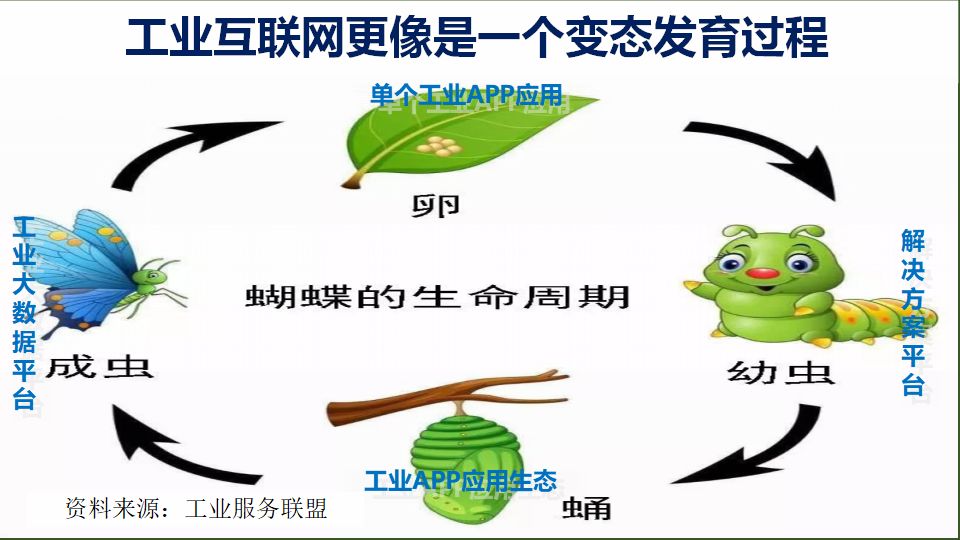 工业互联网平台的发展过程,则是一个变态发育过程 ,每一个过程的产品形态和运营方法都是不同的。每一次升级都不仅量变的过程,更重要的是质变过程。