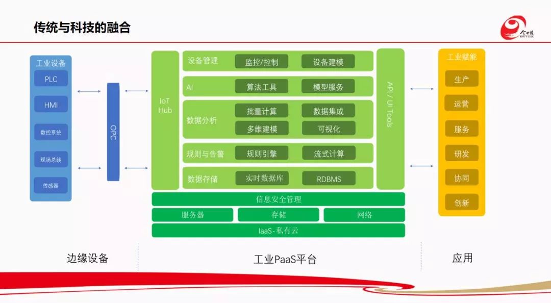很难想象,“工业PaaS”已经真实地进入了一个企业的工作进程。智能化阶段与信息化阶段的显著不同是什么?就是数据生产的主力由人变成机器。数以万计的传感器、全程作业的机器人、支持各种自动化作业的装备以秒级、毫秒级的节拍在输入与输出数据。在工业PaaS的一侧是各种边缘设备,另外一侧就是各种应用。