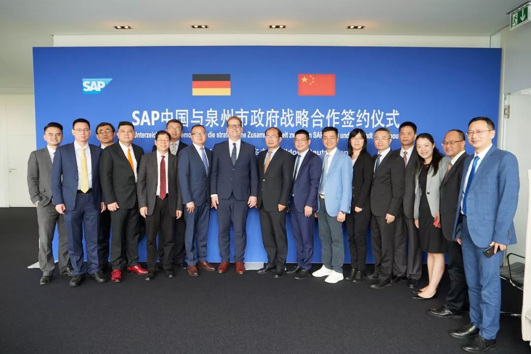 5月29日,泉州市委副书记、市长王永礼率泉州市政府企业代表团一行12人,参观访问位于德国沃尔多夫的 SAP 总部。SAP 全球副总裁胡安德先生、孙华女士,SAP 中国政府和公共服务总监郑太阳先生等热情接待了王市长一行。在胡安德先生、王永礼市长的共同见证下,SAP 中国与泉州市政府签署了工业互联网、智能制造合作备忘录。