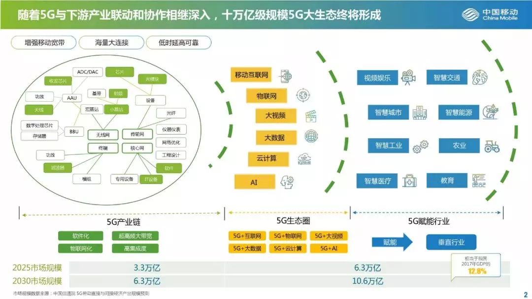 随着5G与下游产业联动和协作相继深入,十万亿级规模5G大生态终将形成。5G产业链将推动四大变革:软件化、超高频大宽带、物联网化、高集成度。同时,5G也将成就边缘计算,进而推动云计算市场加速发展。本篇为大家分享的报告从发展与投资角度解读5G。以下为报告全文。