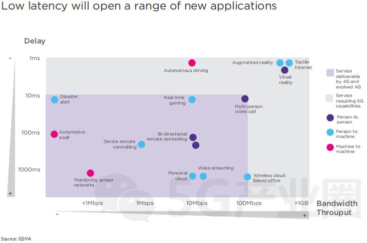GSMA Intelligence全球TMT生态系统研究主管Pablo Iacopino说:“5G将会增强网络能力,提供实时或者近乎实时的服务。无人驾驶汽车与沉浸游戏要求延迟降到秒以下,现在的4G网络还做不到。”