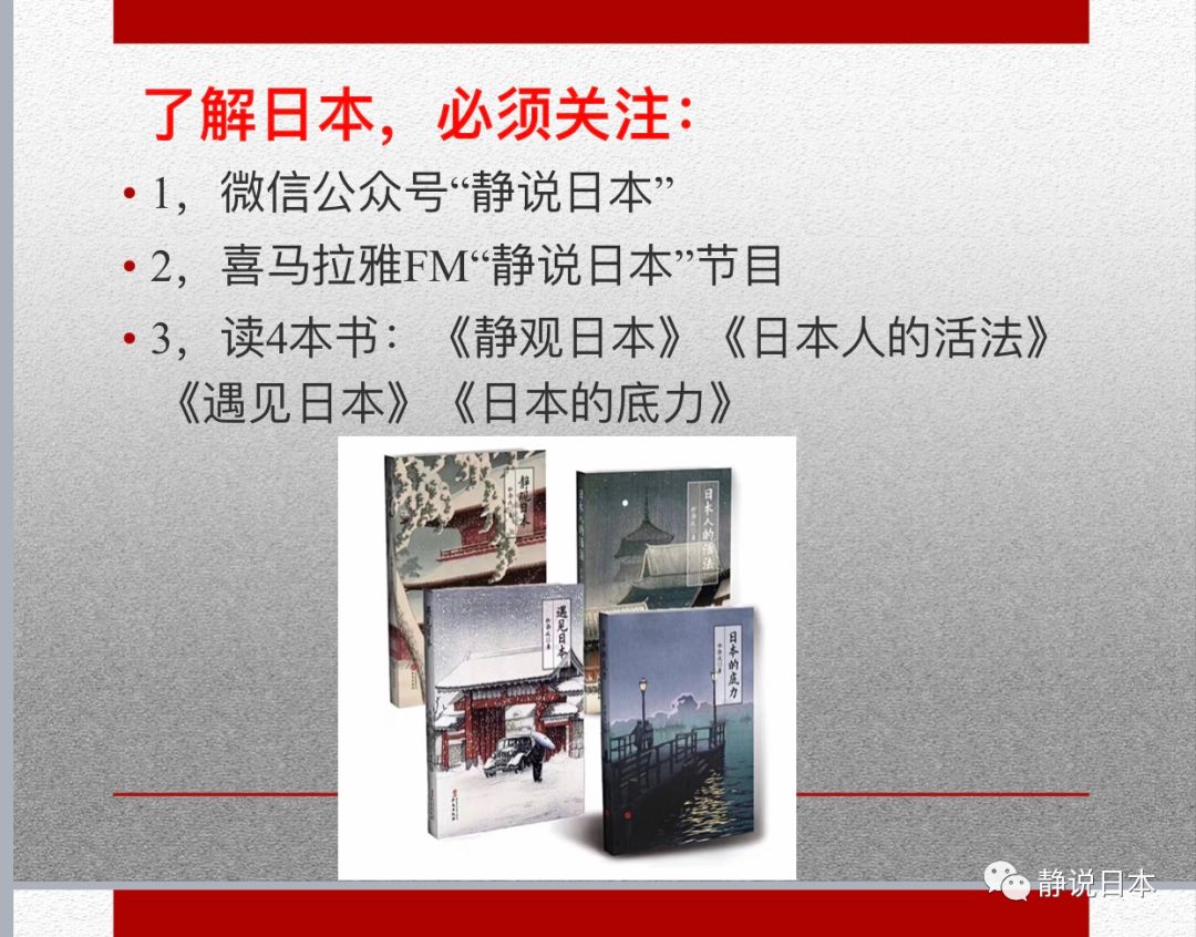 《日本制造业白皮书》是一本政策专业书,如果想了解日本更多的内容,第一,你得订阅我的微信公众号“静说日本”;第二,你得收听我的喜马拉雅节目“静说日本”;第三,你得去当当网、京东购买我的四本书。跟大家开玩笑了!对于大家没打瞌睡如此认真做笔记听完我这2小时的课,深表敬意,谢谢大家!