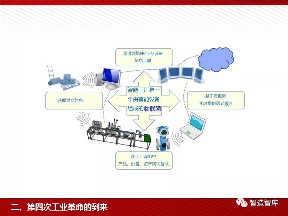 工业4.0由德国提出,主要是指,在“智能工厂”利用“智能设备”将“智能物料”生产成为“智能产品”,整个过程贯穿以“网络协同”,从而提升生产效率,缩短生产周期,降低生产成本。