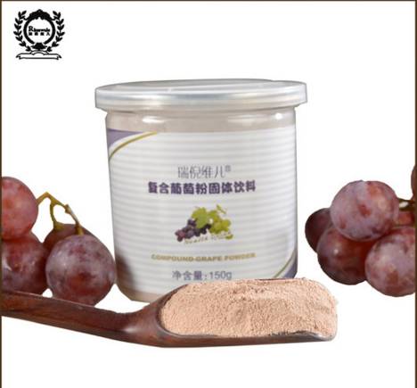 瑞倪维儿复合葡萄粉固体饮料以葡萄粉、蓝莓粉为主要成分,能全面抵抗自由基,增强身体抗氧化能力,降低心脏病、癌症、早衰、高血压、糖尿病、关节炎和老年痴呆症的发病率,增强血管壁抵抗力,降低毛细血管脆性,预防并缓解青肿、静脉曲张、减轻水肿和腿部肿胀等。对急性胃溃疡及消化道系统炎症效果显著。长期使用还能增强皮肤弹性,延缓皮肤衰老,具有美容养颜的作用。该产品口感舒适,微甜微酸,服用时取本品1/4勺(约合1克)加入60ml温水或热水,搅拌均匀后即可饮用,男女均可服用,尤其适于长期吸烟饮酒、工作压力大的亚健康人群。