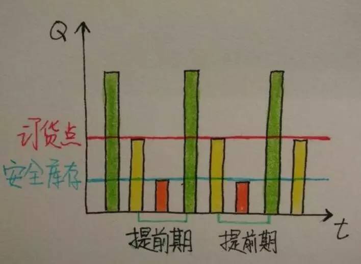 首先,MRP物料需求计划,顾名思义,主要是围绕库存展开的需求计划,库存管理最原始的管理办法是订货点法,如下图: