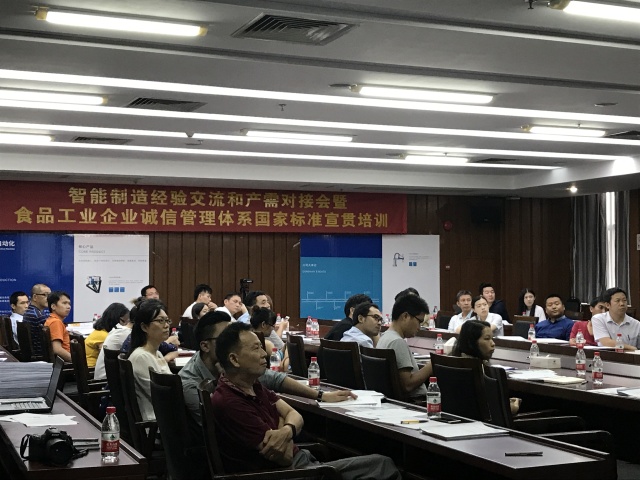 6月20日下午,由东莞市经济和信息化局指导,我会主办,茶山镇人民政府经济贸易办公室协办的智能制造经验交流和产需对接会暨食品工业企业诚信管理体系国家标准贯宣培活动顺利举行。本次活动结合茶山镇产业特色,为企业带来了最新的智能工厂自动化应用案例分享,共吸引了20多家食品和制造型企业,10多家自动化设备生产和集成商前来对接。东莞华美食品,嘉顿食品等较大规模的企业均有前来参加活动。