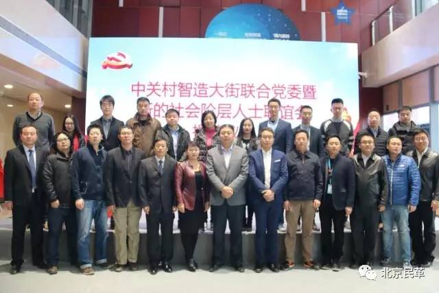 2016年12月1日,中关村智造大街联合党委和新的社会阶层人士联谊会成立,智造大街24位企业高管召开了第一届新阶层理事会。中共北京市委统战部副部长严卫群,中共海淀区委常委周志军,区委常委、组织部部长、统战部部长刘勇等领导出席会议。