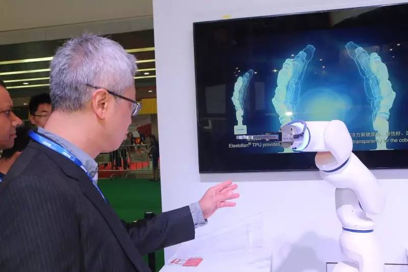 例如,在本届展会现场,巴斯夫展示了与中科新松有限公司联合开发的轻量化协作机器人,这种机器人相比传统工业机器人成本更低廉、适应性更强、更轻便。