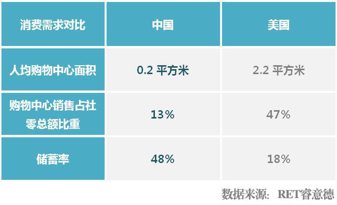 但相对中国的消费需求,还远没有释放。中国人均购物中心面积、购物中心销售占社零总额比重尚处于较低水平,发展潜力巨大。而我国的储蓄率则远高于韩国、日本、美国等国家。