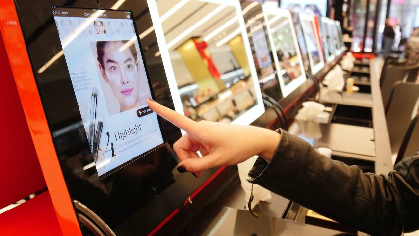 丝芙兰TIP概念店内采用了一系列虚拟试用技术: