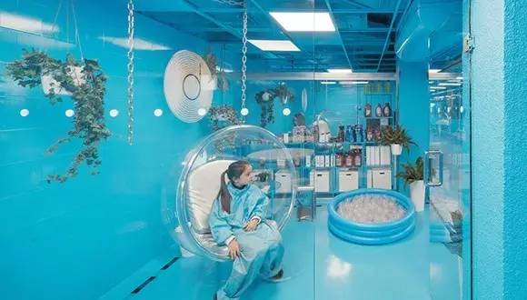 Burbucar Car Wash占据840㎡的空间,一改寻常洗车店形象,以满目澄澈透亮的蓝色做到了“出奇抢眼”。