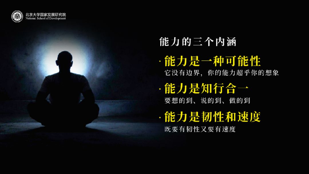 第三,能力是韧性和速度。什么叫韧性和速度?就是你要不断地推动自己向前走,你停留下来了,能力也就停留下来了。你不坚持,能力也会失去。