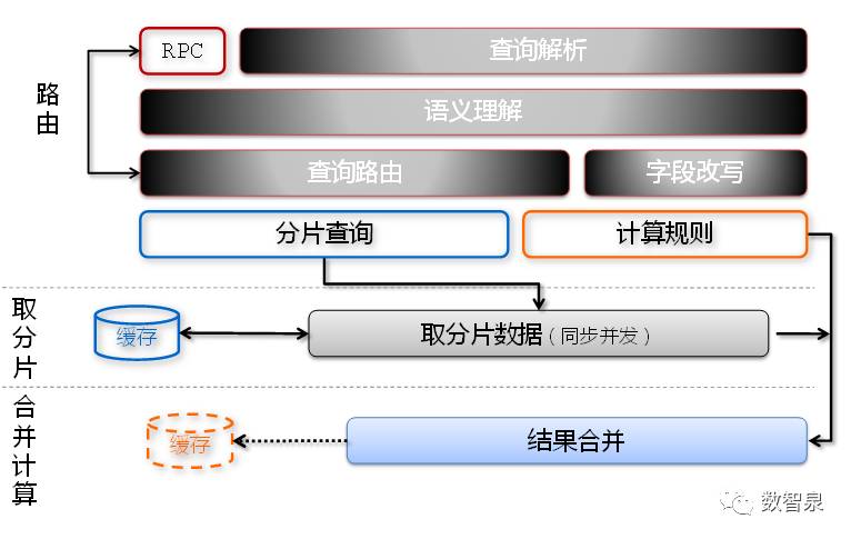 整个数据对应多份,按照不同规则均匀分布在各个分析实例中,数据的merge服务在其中的一个分片中进行,每次请求将根据机器负载情况选择负载轻的作为merge服务器。
