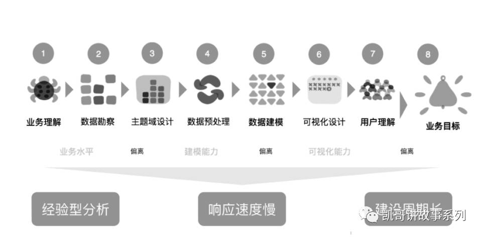 这是传统企业数据分析的典型做法,适合那些业务确定性较高,逻辑相对简单的分析场景。但是对于数据量大,数据结构复杂的探索和预测性业务,效果通常不是很好。