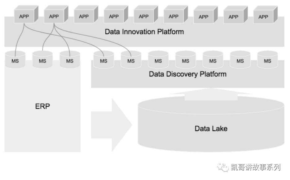 比如,在传统企业ERP系统基础上,我们可以通过构建数据湖、数据发现平台及数据创新平台,利用机器学习的技术,激活以ERP为核心的企业后端业务数据,构建创新敏捷、快速实验的、以数据为核心的创新能力。