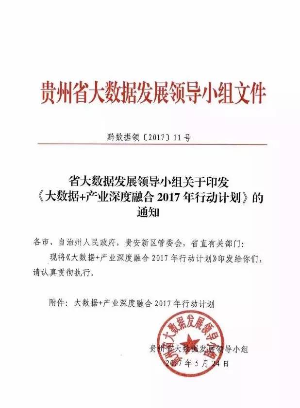 为深入实施大数据战略行动,加快推进国家大数据综合试验区建设,推动大数据与三次产业深度融合发展,按照省政府工作要求,决定开展“大数据+产业深度融合2017年行动计划”(以下简称行动计划)。