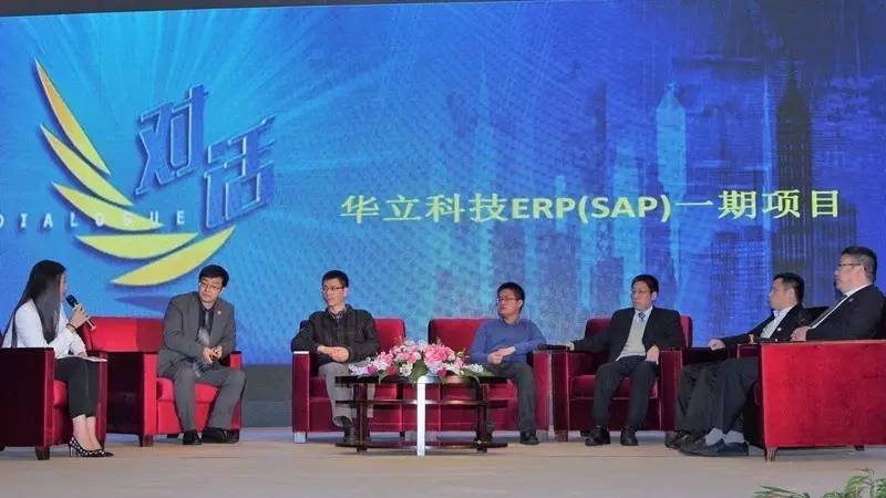 主持人梁敏邀请六位代表对华立科技 ERP (SAP) 一期项目进行总结性访谈:① 特邀嘉宾海外产品线总经理李文周;② ERP 项目组核心成员代表徐祥卫;③ ERP 项目组核心成员代表程祖;④ ERP 内部IT顾问代表翟克磊;⑤ ERP 项目经理章俊;⑥ ERP 项目总监贺红云。