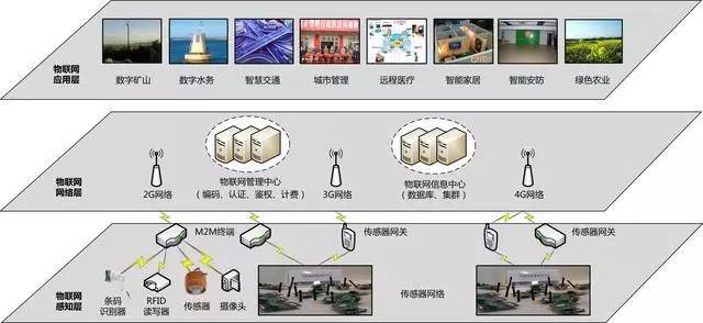从技术架构上来看,物联网可分为三层:感知层、网络层和应用层,如下图所示。