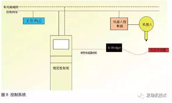 所有的装配信息的交互均是由工位PLC、机器人控制和视觉控制三个方面实现(见图8)。