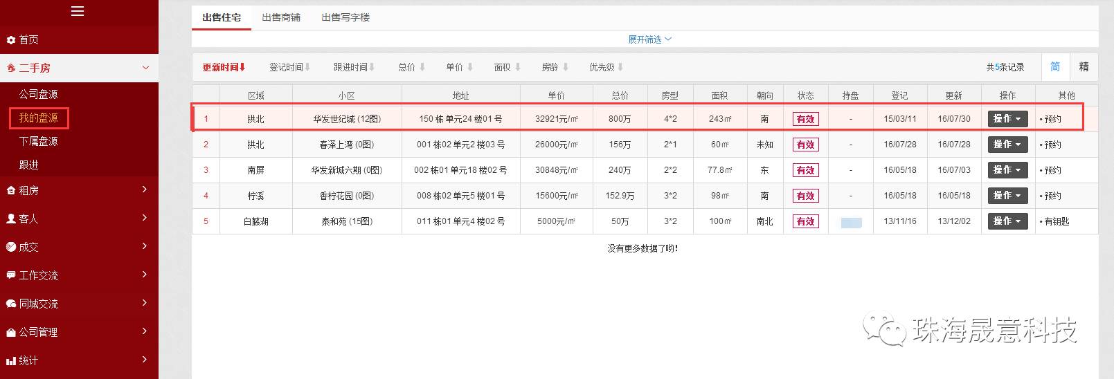 1登陆晟意云伴系统, 找到【二手房】或【租房盘源】板块中【我的盘源】,