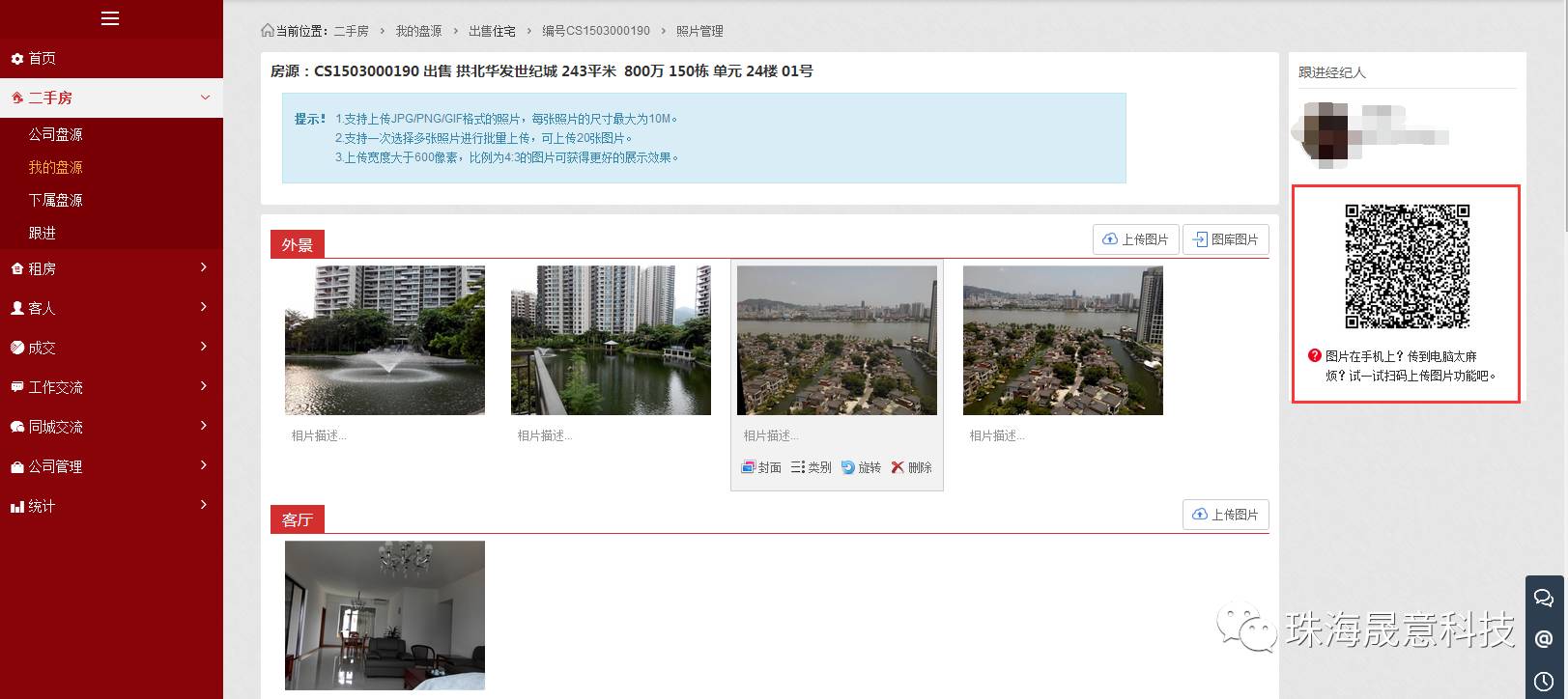 房源图片就能直接上传,PC端会同步更新展示。