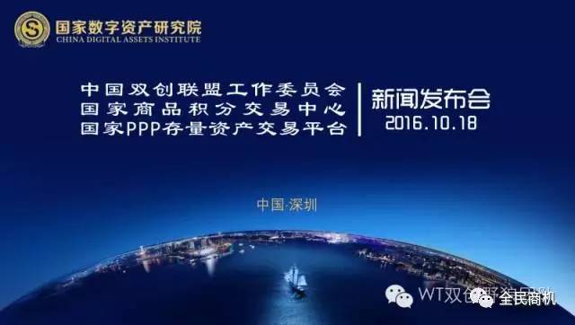 2016年10月18日《中国双创联盟工作委员会》《国家商品积分交易中心》《国家PPP存量资产交易平台》新闻发布会暨授牌/授旗仪式在深圳五洲宾馆举行。