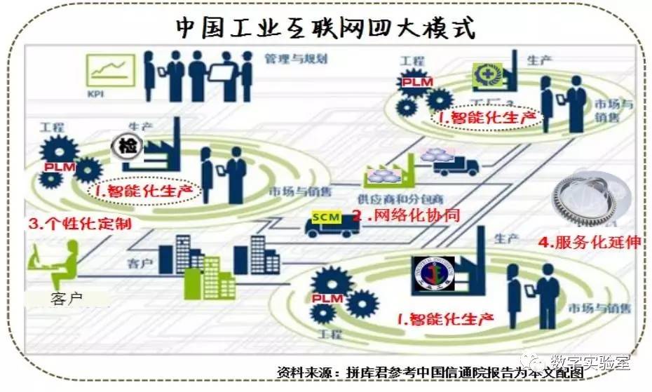 (1)工业+互联网:基本上是在现有的产品设计、制造、销售、运行、维护业务中引入数据化、互联网、软件分析,尽可能优化过程,产生新的经济效益,中国很多自称工业互联网的项目大多属于这一类。
