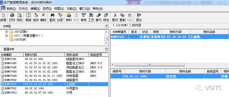ERP系统获取成功后在BOM管理中示意图如下所示: