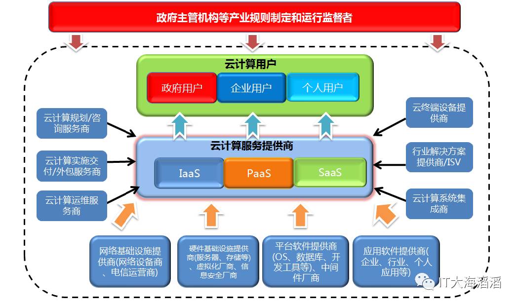 时至今日,云计算也没有一个大家都认可的定义,不过没关系,定义认可不认可并不影响云计算已经成为当前信息产业的主流发展模式,现在的云计算,已经是社会方方面面参与建设的IT产业了。