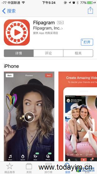 Flipagram是美国市场的主流视频创作应用。有资料显示,Flipagram于2013年上线,2014年月活跃用户达到3000万,上一轮的B轮融资达到了7000万美金。