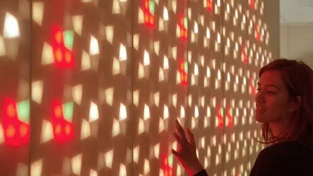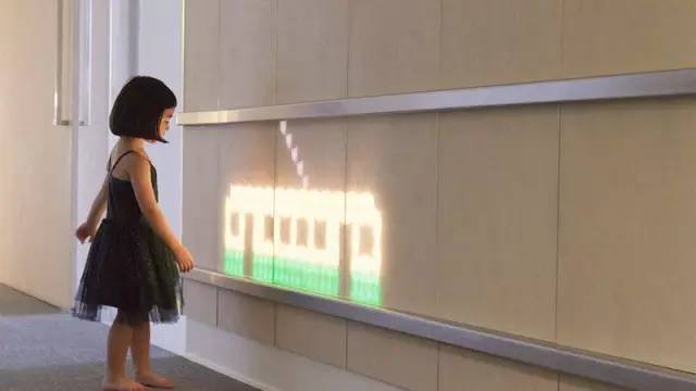 行人可以通过触碰墙壁上的图像